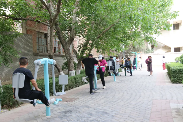 在凉州区书城路西侧,一座静谧的小公园内,国槐、梓树、海棠树枝繁叶茂,浓密的树冠如同一把绿伞,为往来行人撑起片片清凉绿荫。古色古香的亭廊之下,老人们悠然地围坐在一起,谈天说地,闲适惬意;不远处的空地上,孩子们嬉笑追逐,清脆的欢笑声此起彼伏,为公园注入无限生机与活力。